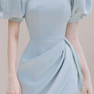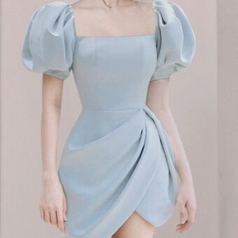 ボリューム袖がアクセントになったミニワンピース
