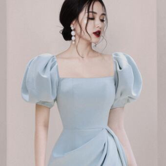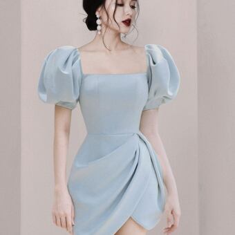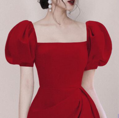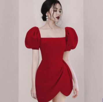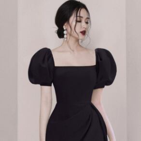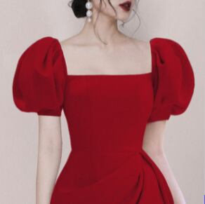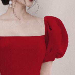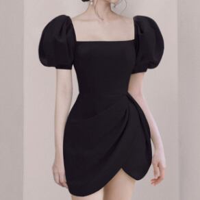 ボリューム袖丈ワンピース トップス スイート ガーリー ブラック 黒 ブルー 青 レッド 赤 ミニ丈 ショート丈 袖あり 半袖 ボリューム袖 スクエアネック フレア スリム 細身 タイト 大人女子 大人 上品 おしゃれ エレガント レトロ レトロ風 こなれ感 キュート かわいい 女子 個性的 デザイン 主役級 存在感 無地 夏 サマー 20代 10代 レディース 女性用 女の子 イベント リゾート 旅行 パーティ S M L XL ヴィヴィッドカラー 原色