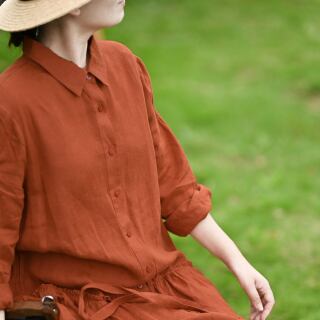 こだわりの一着、コットンワンピースが登場です。ロング丈のシルエットは、大人の女性にふさわしい上品な印象を与えます。アイテムの特徴は、ポロカラーとAラインシルエット。ウエストリボンがあるので、自分の体型に合わせたシルエットを作ることができます。