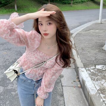 花柄がキュートな長袖シフォンチュニックです。