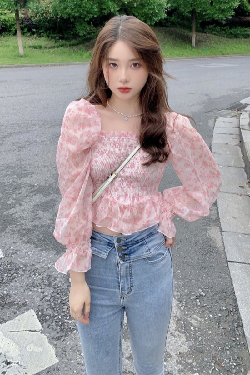 シフォン花柄チュニック トップス ブラウス チュニック 長袖 スクエアネック シフォン 爽やか かわいい 大人可愛い きれいめ シンプル カジュアル 大人 上品 おしゃれ レトロ アジアン 大人可愛い ラブリー キュート ガーリー 柄 花柄 小花柄 フラワー 春 夏 10代 20代 30代 40代 50代 レディース ママ 女の子 OL 通勤 学生 通学 デート お出かけ 女子会 お泊まり 休日 リゾート 旅行 着回し ファッション コーデ 楽ちん モテ インスタ映え フリーサイズ ゆったり ピンク