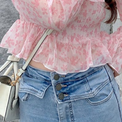 シフォン素材で仕上げた、花柄チュニックが新登場!爽やかな小花柄が可愛い、春夏にぴったりの1枚です。トレンドのスクエアネックが、顔周りをスッキリと見せてくれます。また、袖口はゴム仕様で、手首を程よくギュッと締め付けて、女性らしい雰囲気を演出。裾はフレアデザインで、動くたびに軽やかになびく様子が、女性の美しさを一層引き立てます。