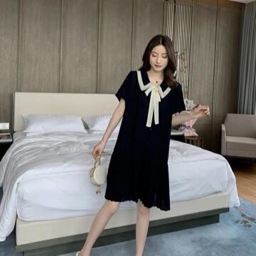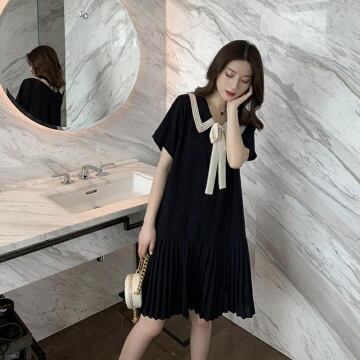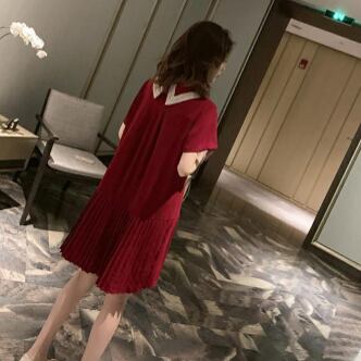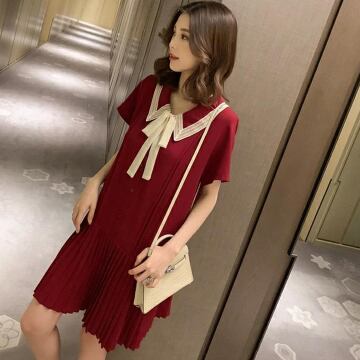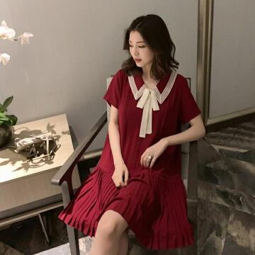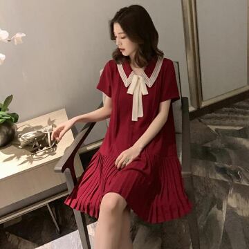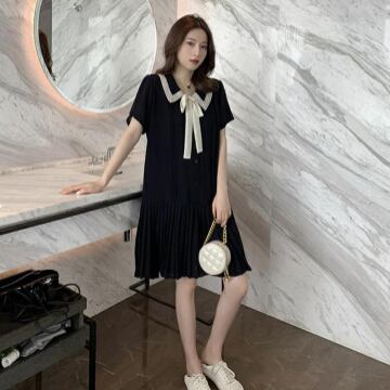 シフォンプリーツワンピース トップス クラシック スイート ガーリー ブラック 黒 レッド 赤 ミニ丈 ショート丈 袖あり 半袖 襟付き プリーツ リボン 大人女子 大人 上品 おしゃれ エレガント デイリーウェア レトロ レトロ風 こなれ感 ルーズ シルエット ラフ キュート かわいい 女子 個性的 デザイン 主役級 存在感 柄 ライン 夏 サマー 20代 10代 レディース 女性用 学生 学校 通学 着回し 普段使い L XL 2XL 3XL 4XL