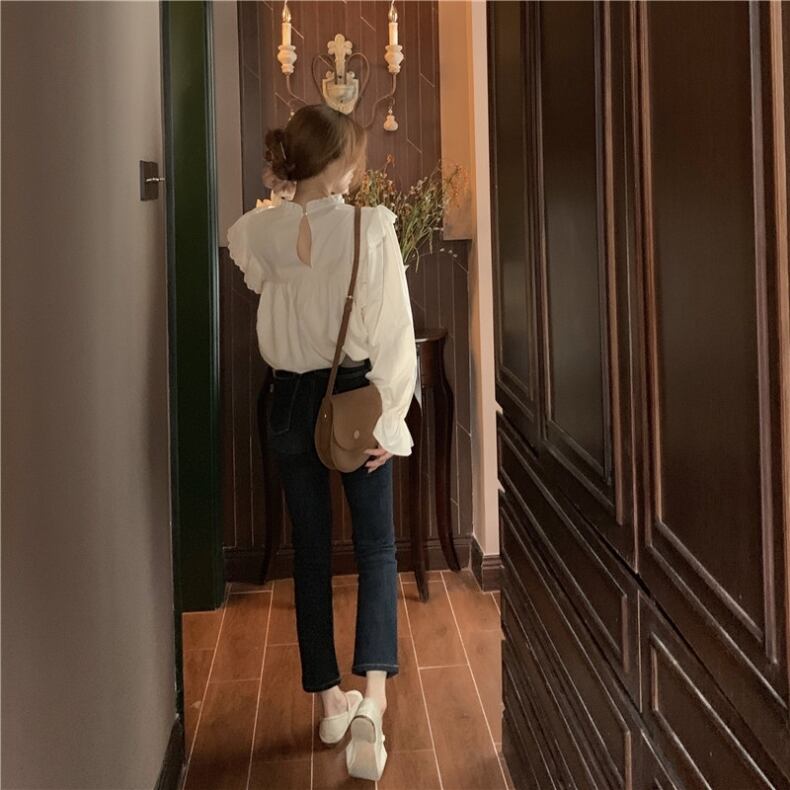 上品で可愛らしいデザインなので、オフィスやビジネスシーンでも使いやすく、カジュアルなデイリーウェアとしても活躍します。 ファッションのコーディネートに迷ったとき、ぜひこの長袖フリルシャツを取り入れてみてください。