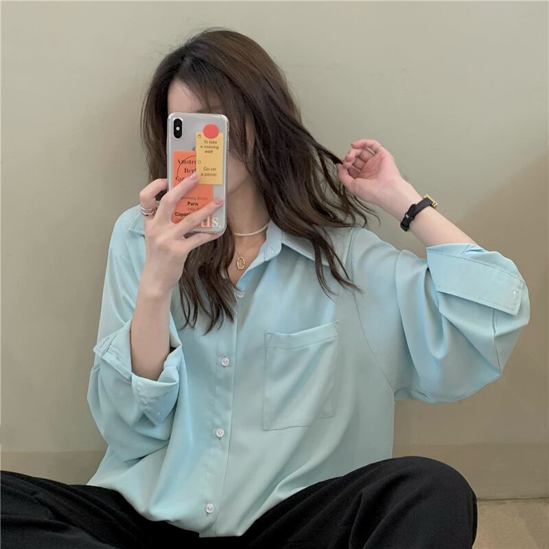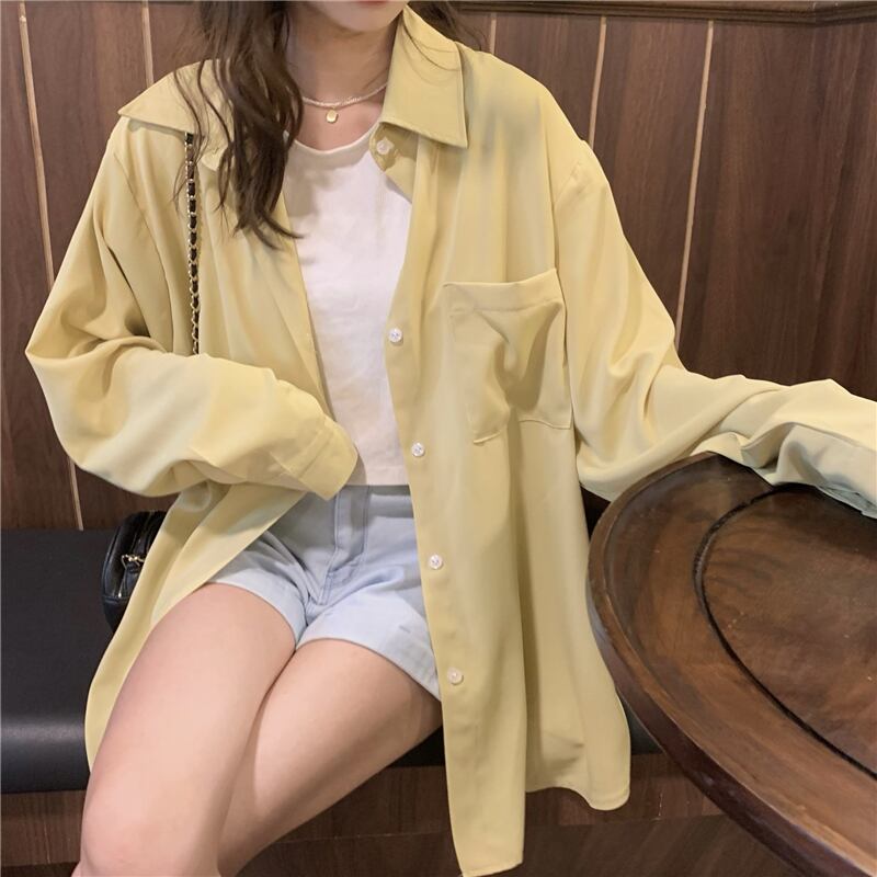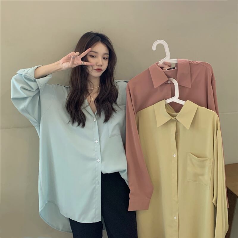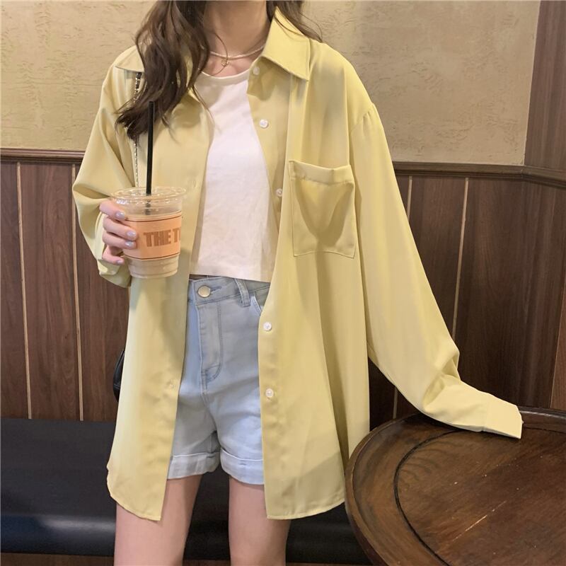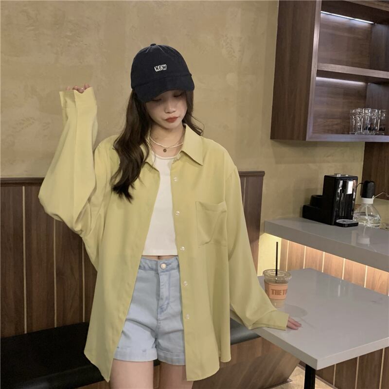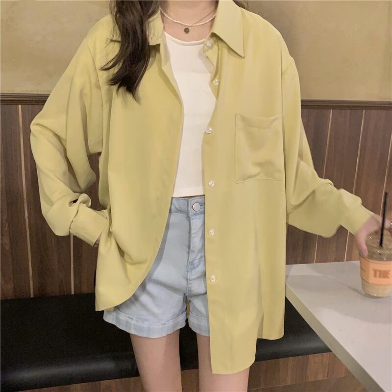 カラーシャツ トップス シャツ ブラウス シンプル ブルー 青 ピンク イエロー 黄色 レギュラー丈 袖あり 長袖 襟付き ストレート シングルブレスト ボタン 大人女子 大人 上品 おしゃれ デイリーウェア レトロ レトロ風 こなれ感 ルーズ シルエット ラフ 主役級 存在感 無地 春 スプリング 20代 10代 30代 40代 レディース 女性用 オフィス ビジネス OL 通勤 学生 学校 通学 着回し 普段使い 重ね着 レイヤード ワンサイズ パステルカラー
