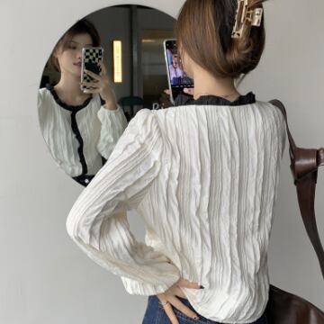 フリルがかわいいバイカラーシャツ