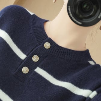 洗練されたラフなスタイルを叶えてくれるボーダー柄のセーター。細身のシルエットながら、トップス部分はストレートに仕上げているので、上品な雰囲気があります。春・秋・冬に着用でき、どんなシーンでも活躍してくれます。キュートさと大人っぽさ、両方を兼ね備えた、大人女子にぴったりの一品。シンプルなデザインなので、自分のスタイルや気分に合わせて、様々な着こなしが可能です。おしゃれな韓国系ファッション好きにもオススメ!素材にもこだわり、快適な着心地を実現。ぜひ、コーディネートのアクセントにぴったりな渋めのブラックをお試しください。