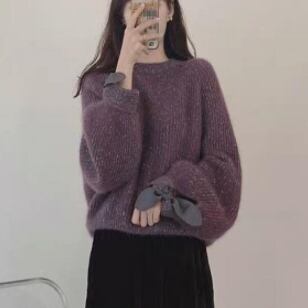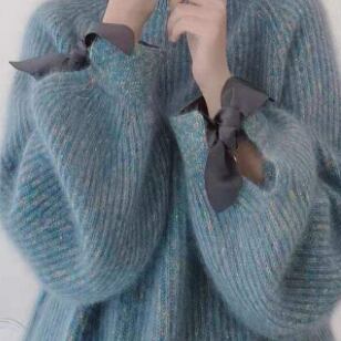 このリボン付きセーターは、色とりどりのブルーとパープルで上品な華やかさを演出します。細身でスマートなシルエットが女性らしい美しさを引き立て、自信を感じさせてくれます。シンプルなデザインで、大人っぽくかわいらしく着こなすことができます。