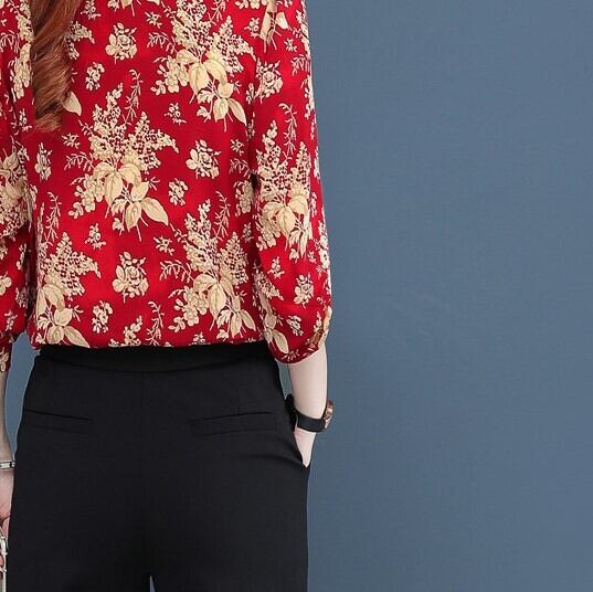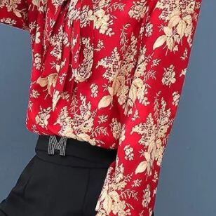 花柄シャツ ブルー レッドが、あなたの華やかなスタイルを演出します。オフィスはもちろん、デートや女子会、リゾート旅行など、あらゆるシーンで活躍するマルチなトップスです。シルエットはスリムで細身、適度なストレートラインが美しさを引き出します。