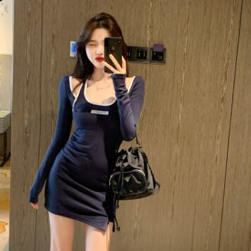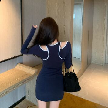 タイトカジュアルワンピース ワンピース ミニ丈 袖あり 長袖 ラウンドネック ホルターネック スリム タイト 細身 ストレート 伸縮性 綿 爽やか 大人スタイル かわいい 大人可愛い きれいめ シンプル カジュアル 大人 おしゃれ かっこいい 大人可愛い スポーティー ラブリー キュート 個性的 セクシー 存在感 爽やか 無地 春 夏 10代 20代 30代 40代 レディース ママ 女の子 デート お出かけ 休日 イベント ファッション モテ プ S M サイズ コンパクト タイトデザイン 青