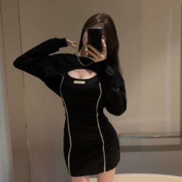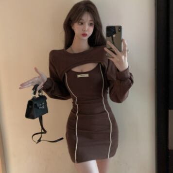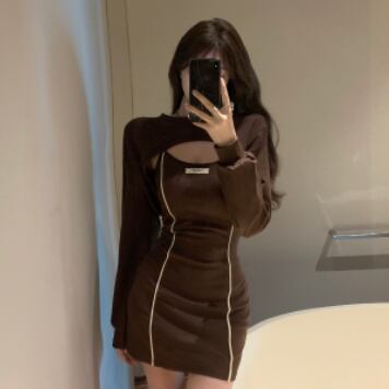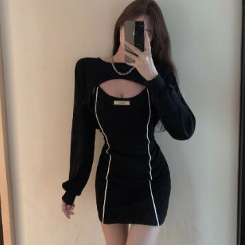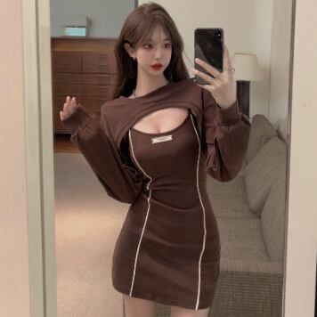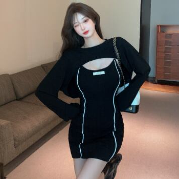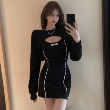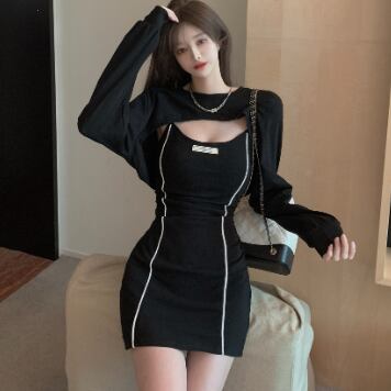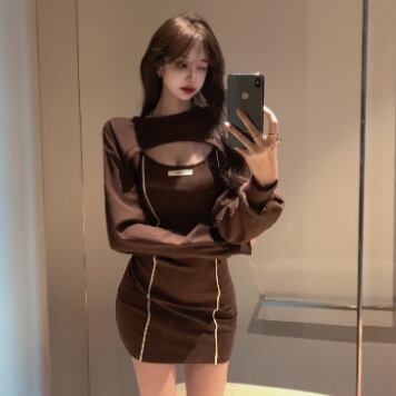 タイトなミニ丈ワンピースとトップスのセットです。