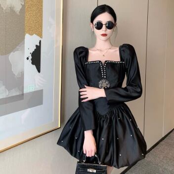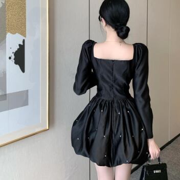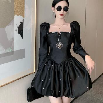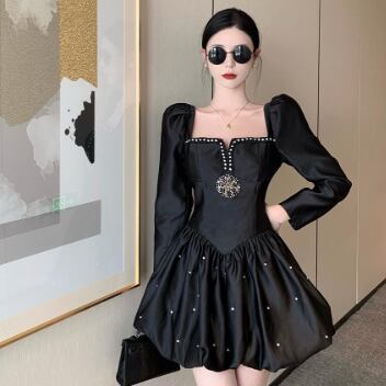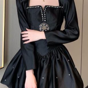 ブラックミニワンピースドレス ワンピース ドレス ミニ丈 袖あり 長袖 スクエアネック フレア Aライン かわいい 大人可愛い きれいめ シンプル 大人 上品 おしゃれ かっこいい 大人可愛い ラブリー キュート 個性的 クール エレガント 主役級 存在感 フォーマル 無地 春 秋 冬 誕生日 謝恩会 結婚式 二次会 披露宴 20代 30代 40代 レディース ママ 女の子 デート お出かけ パーティー イベント ホテル レストラン モテ トレンド 流行 インスタ映え S M L 黒 ブラック