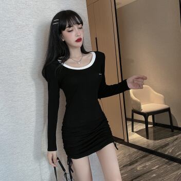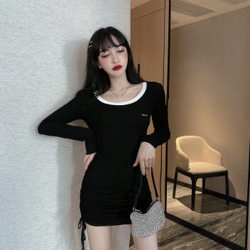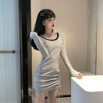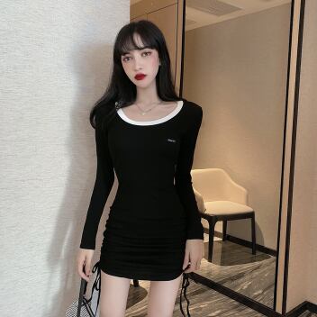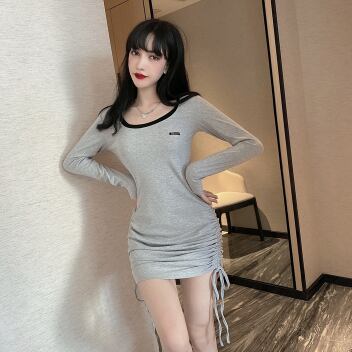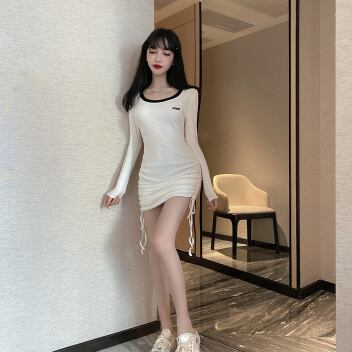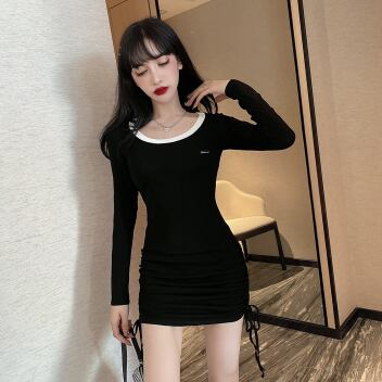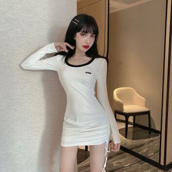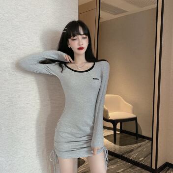 タイトな長袖ミニ丈Tシャツワンピースです。
