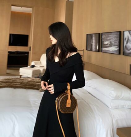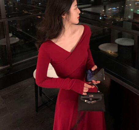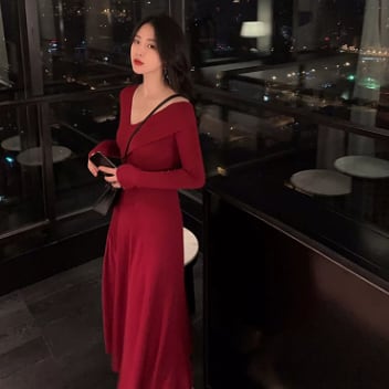 大人女性にぴったりのクールなスタイルが完成するVネックAラインロングワンピース。シンプルなデザインでありながら、落ち感のあるフレアAラインが女性らしい雰囲気を醸し出してくれます。長袖なので、春秋冬の季節にも活躍する1着です。無地であるため、どんなアウターとも相性がよく、合わせ方次第で様々なシーンで着用できます。誕生日や結婚式、パーティーなど、華やかな場面にもぴったりです。大人だからこその上品な着こなしを、このワンピースで実現してください。