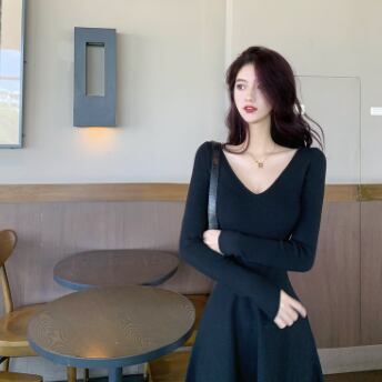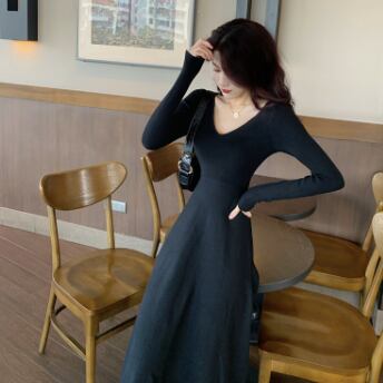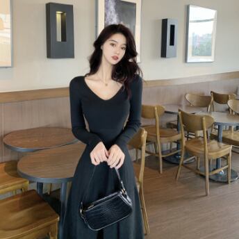 存在感のあるVネックが美しさを引き立てる、大人可愛いロングワンピースのご紹介です。細身で上品なAラインフレアシルエットが、女性らしい素敵なカーブを作ります。袖丈も長めで、寒い季節にも活躍してくれる優れもの。無地のシンプルなデザインは、どんなシーンでも合わせやすく、幅広い年齢層の方におすすめです。