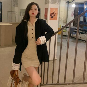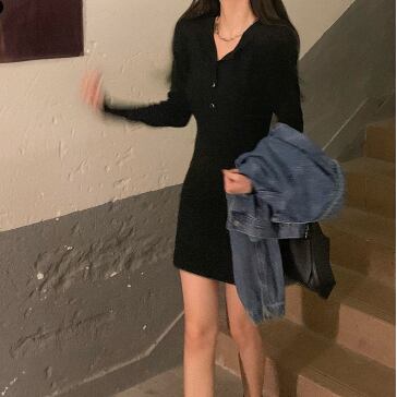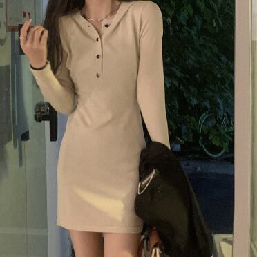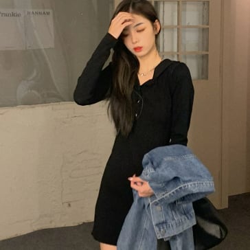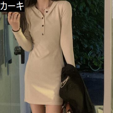 首元メタルボタン ストレッチ ボディコンシャス 女っぽ 足見せ マイクロミニ丈 フーディワンピ ワンピース ミニ丈 膝上 袖あり 長袖 スリム タイト 細身 スマート フード付き 伸縮性 ポリエステル ニット かわいい 大人可愛い シンプル カジュアル おしゃれ お洒落 上品 大人女子 セクシー 無地 春 秋 レディース 女性用 女の子 デート お出かけ 休日 普段使い 重ね着 着回し 韓国系 オルチャン ファッション スタイル コーデ 美脚 脚長効果 合わせやすい フリーサイズ ブラック カーキ