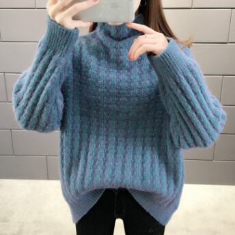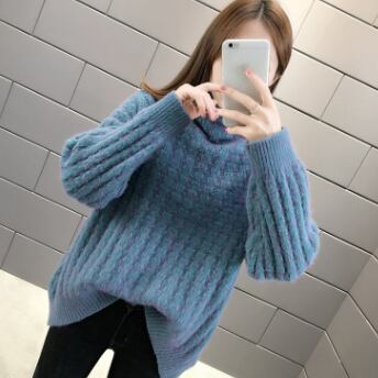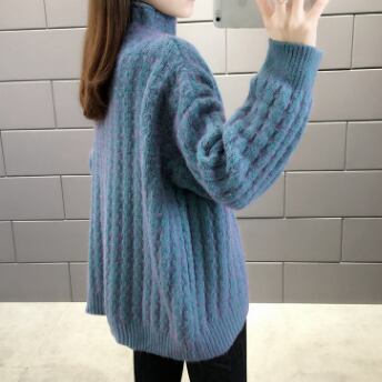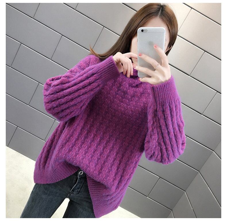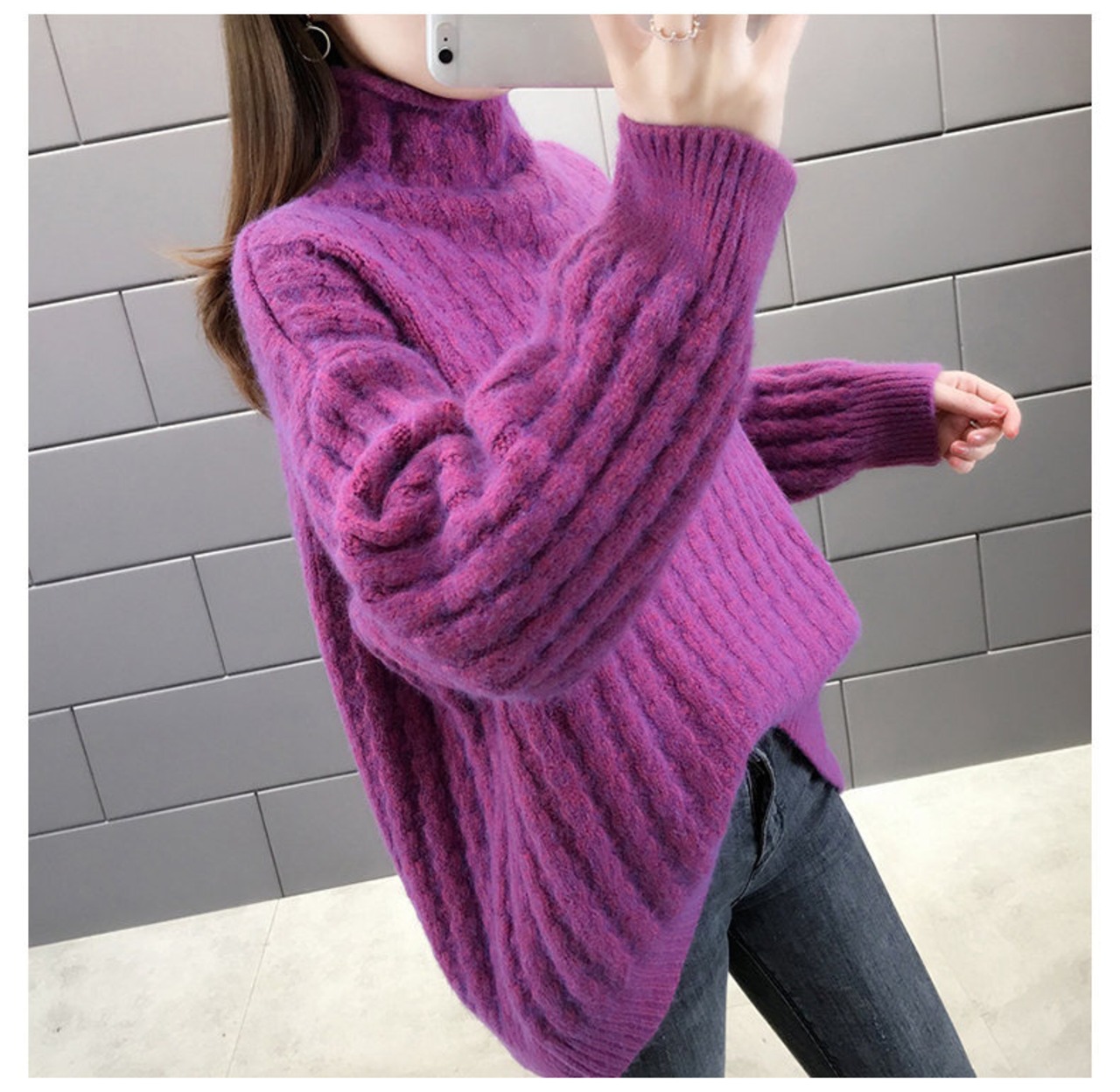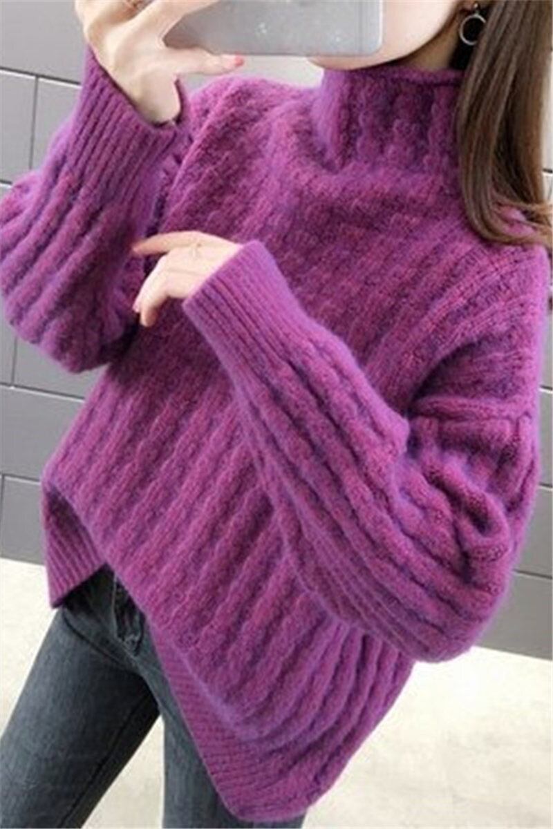 このタートルネックセーターは、白・青・紫と3色からお選びいただける、多彩なカラーバリエーションが魅力。スリムで細身のストレートシルエットが、女性のスマートさ・美しさを引き立てます。