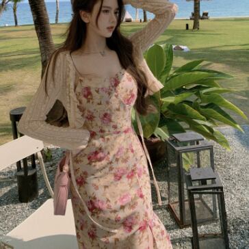 フラワープリントがとってもかわいい、夏にピッタリなキャミソールワンピースです。スリムで細身のシルエットが女性らしさを引き出し、着心地もよく、視線を釘付けにします。生地は軽く、風が吹くとふんわりと揺れて、レトロでエレガントな雰囲気に。リゾートや旅行にもぴったりです。