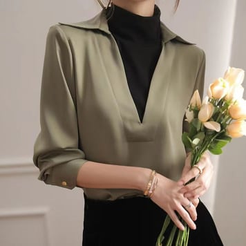 スキッパーシャツは、大人可愛い韓国系ファッションを取り入れたトップスです。Vネック襟と長袖のシャツブラウスが女性らしく、とろみ感のある素材で上品な印象に仕上がっています。春秋におすすめのアイテムで、様々なシーンで大活躍。オフィスやビジネス、通学やデート、女子会からお泊まりまで、コーディネートの主役級存在感を出すことができます。カラーも豊富だから、普段使いや着回しにもぴったり。憧れの韓国系ファッションを手軽に楽しめる、定番の一枚です。是非、おしゃれ上手なあなたのワードローブに加えてみてください。