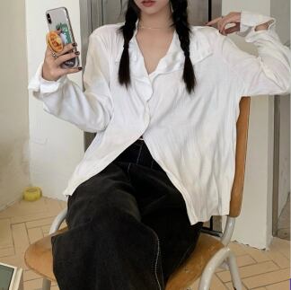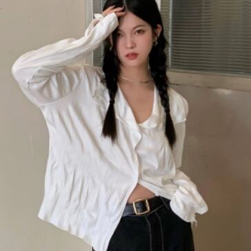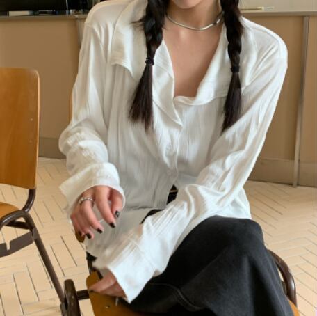 オーバーサイズ オブロングカラー 消しプリーツ風 縦じま地模様入り トップス シャツ ブラウス ミディアム丈 袖あり 長袖 ドロップショルダー 萌え袖 襟付き Vネック 前開き シンプル カジュアル おしゃれ お洒落 かっこいい 大人女子 こなれ感 ルーズ クール モード系 シマ 春 秋 レディース 女性用 女の子 ママ 学生 通学 お出かけ 女子会 休日 着回し 普段使い 重ね着 韓国系 オルチャン ファッション コーデ 体系カバー フリーサイズ 大きめ ゆったり ゆる サイズ オフ白 オフホワイト