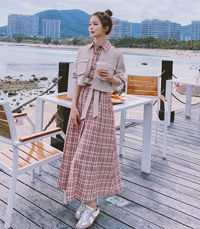 ロングワンピース 重ね着風ワンピース ワンピース ロング ロング丈 長袖 かわいい 大人可愛い おしゃれ お洒落 レトロ 大人可愛い 大人女子 ラブリー キュート ガーリー 個性的 主役級 存在感 チェック柄 春 10代 20代 30代 レディース 女性用 女の子 学生 デート 女子会 お泊まり 休日 リゾート 旅行 着回し 普段使い 重ね着 韓国 韓国系 ファッション コーデ スタイル モテ 新作 定番 送料無料 トレンド 流行 インスタ映え インポート 海外 人気 女子力 大人カジュアル レイヤード