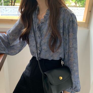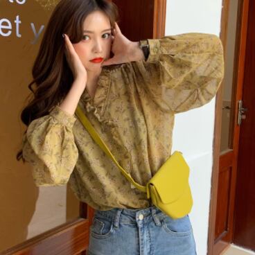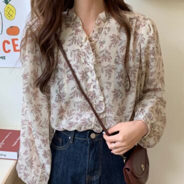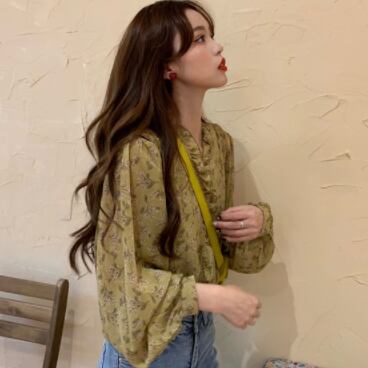 商品名の通り、フェミニンな花柄をあしらったシャツです。ブルー、イエロー、ホワイトの色使いが爽やかで、どんなボトムスとも相性抜群。スリムで細身のシルエットが、女性らしいスマートさを演出します。