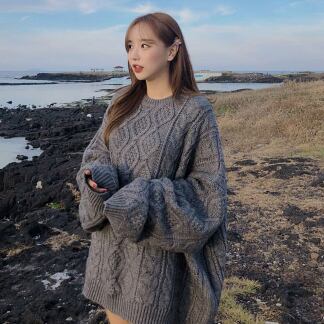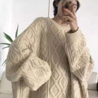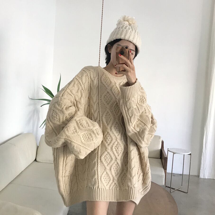 ケーブルニット トップス セーター カジュアル グレー 灰色 アプリコット オレンジ ミディアム丈 袖あり 長袖 ラウンドネック ストレート ワイド 大人女子 大人 上品 おしゃれ デイリーウェア レトロ レトロ風 こなれ感 ルーズ シルエット ラフ 個性的 デザイン 主役級 存在感 無地 秋 オータム 冬 ウインター 20代 10代 30代 40代 レディース 女性用 オフィス ビジネス OL 通勤 学生 学校 通学 着回し 普段使い 暖かい 防寒 ワンサイズ
