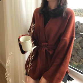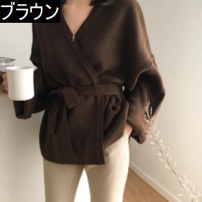 ニットカーディガン トップス セーター シンプル ブラック 黒 ブラウン 茶色 カーキ ブリックレッド レギュラー丈 袖あり 長袖 Vネック ベルト アクリル 大人女子 大人 上品 おしゃれ きれいめ シンプル デイリーウェア レトロ レトロ風 こなれ感 個性的 デザイン 主役級 存在感 無地 春 スプリング 秋 オータム 20代 10代 30代 40代 レディース 女性用 オフィス ビジネス OL 通勤 学生 学校 通学 着回し 普段使い 暖かい 防寒 ワンサイズ