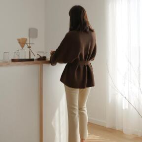 シンプルながら個性的なデザインが魅力のニットカーディガンが登場しました!トップスとしてもセーターとしても使えるレギュラー丈の長袖で、オフィスやビジネスにもぴったり。Vネックにはベルトが付き、ウエストマークできるので、女性らしいシルエットを作ってくれます。