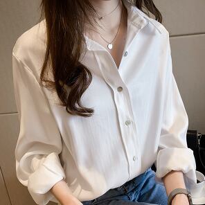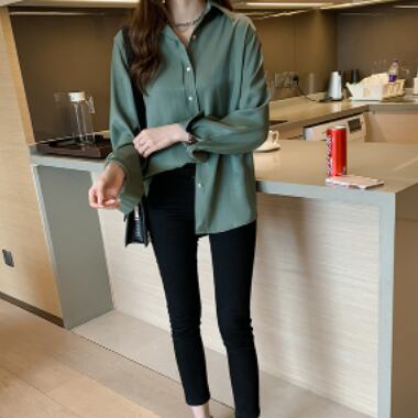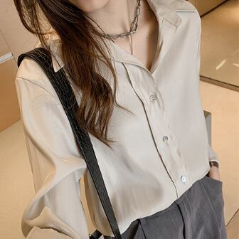 オフィスやビジネスシーンでの着こなしだけでなく、デイリーウェアとしても使えるシンプルなシフォンシャツ。シンプルながらも、着る人の魅力を引き出すこなれ感あるルーズシルエットが特徴です。ミディアム丈で、裾に向かって広がるシンプルストレートのデザイン。袖口には、上品な襟付きとボタンを施し、華やかに見せます。無地のホワイトやくすみカラー、軽やかなグリーンなど幅広い色展開も魅力的です。おしゃれな大人女子たちの上品なスタイルを、主役級の存在感で演出します。ビジネスOLや学生、学校通学もできるので、着回し力もバツグン。あなたのスタイルに合わせて、色違いで揃えても良いですね。
