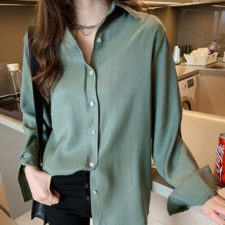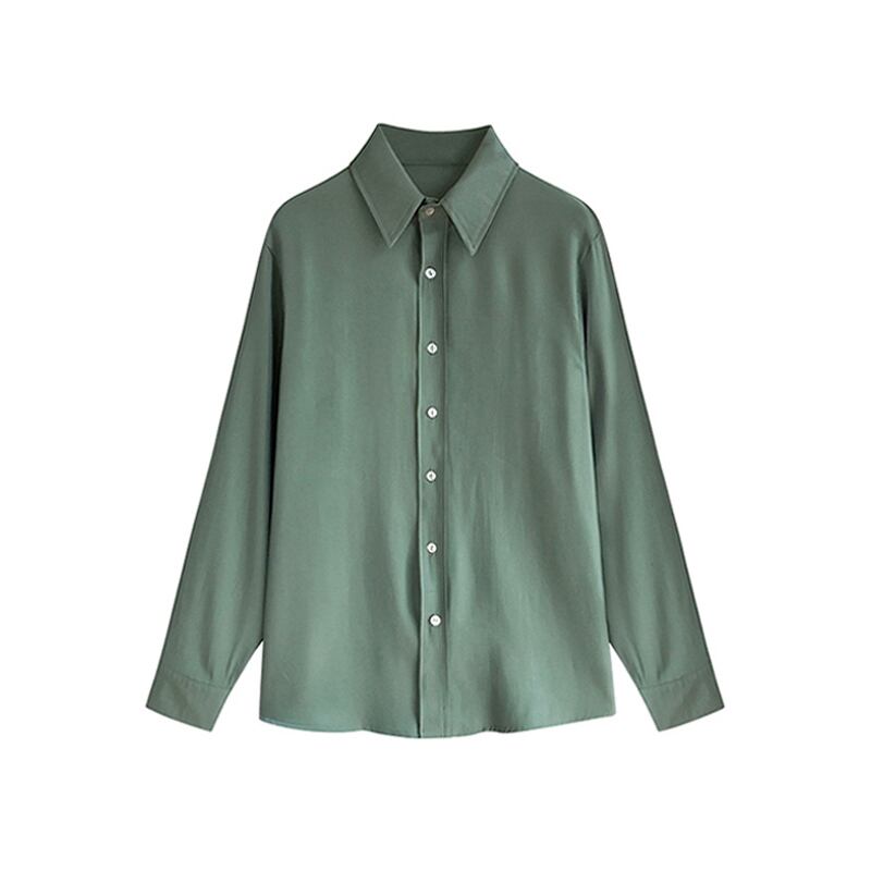 シフォンシャツ トップス シャツ ブラウス シンプル ホワイト 白 グリーン 緑 ミディアム丈 袖あり 長袖 襟付き ストレート シングルブレスト ボタン 大人女子 大人 上品 おしゃれ きれいめ シンプル デイリーウェア レトロ レトロ風 こなれ感 ルーズ シルエット ラフ 主役級 存在感 無地 春 スプリング 20代 10代 30代 40代 レディース 女性用 オフィス ビジネス OL 通勤 学生 学校 通学 着回し 普段使い M L XL くすみカラー