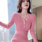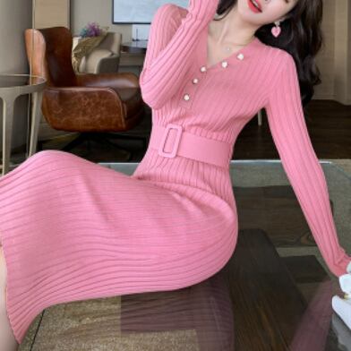 肌触りのよいニット素材を使用した、ミモレ丈のロングワンピースが登場しました。Vネックとウエストのベルトでスタイルアップできるデザインは、大人っぽく上品な印象を与えます。スリムなシルエットで、スタイリッシュでトレンド感のあるおしゃれな一枚です。