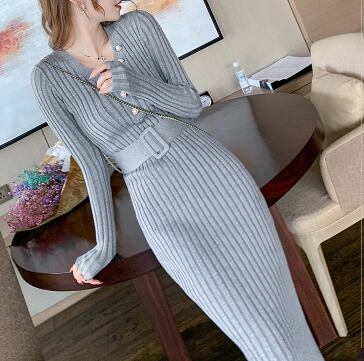 ニットロングワンピース ワンピース ニット ミモレ丈 袖あり 長袖 Vネック スリム タイト 細身 ストレート Iライン ベルト ウエストマーク ニット お得 大人スタイル かわいい 大人可愛い きれいめ シンプル 大人 上品 おしゃれ かっこいい 大人女子 ラブリー キュート 無地 春 秋 冬 誕生日 10代 20代 30代 40代 50代 女の子 OL 通勤 学生 通学 デート 公園デビュー 女子会 お泊まり 休日 着回し ファッション モテ プレゼント S M L XL 灰色 グレー