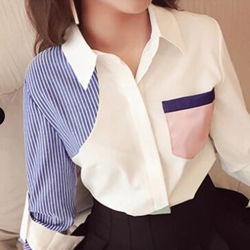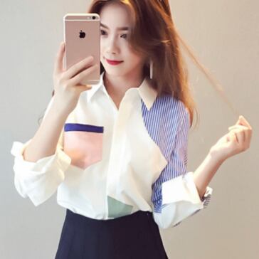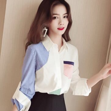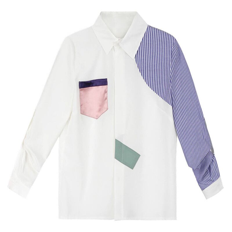 デザインカラーシャツ トップス シャツ ブラウス モダン ホワイト 白 レギュラー丈 袖あり 長袖 襟付き ストレート シングルブレスト ボタン 大人女子 大人 上品 おしゃれ かっこいい クール デイリーウェア レトロ レトロ風 こなれ感 個性的 デザイン 主役級 存在感 柄 配色 ストライプ 縞模様 ボーダー ライン 春 スプリング 20代 10代 30代 レディース 女性用 オフィス ビジネス OL 通勤 学生 学校 通学 着回し 普段使い S M L