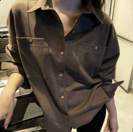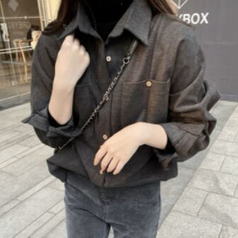 カジュアルシャツ トップス シャツ ブラウス シンプル モダン グレー 灰色 ブラウン 茶色 レギュラー丈 袖あり 長袖 襟付き ストレート シングルブレスト ボタン 大人女子 大人 上品 おしゃれ きれいめ シンプル デイリーウェア レトロ レトロ風 こなれ感 主役級 存在感 無地 春 スプリング 秋 オータム 20代 10代 30代 40代 レディース 女性用 オフィス ビジネス OL 通勤 学生 学校 通学 着回し 普段使い ファッション コーデ S M L XL