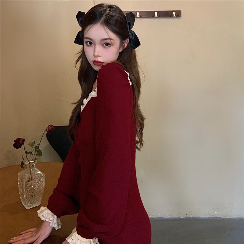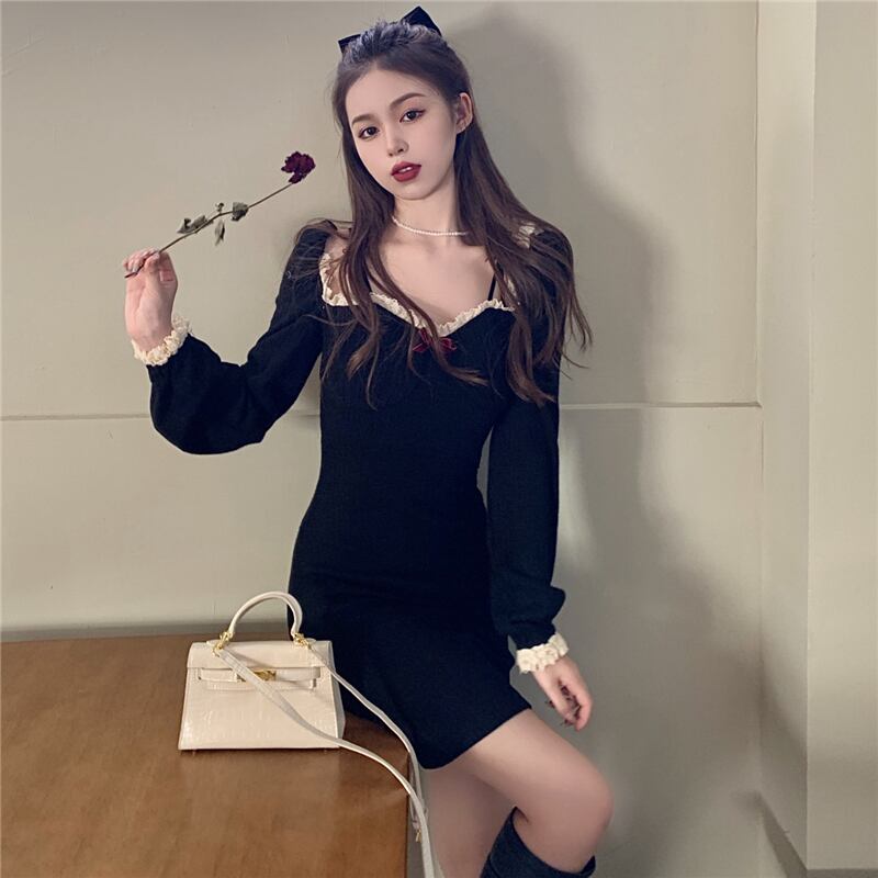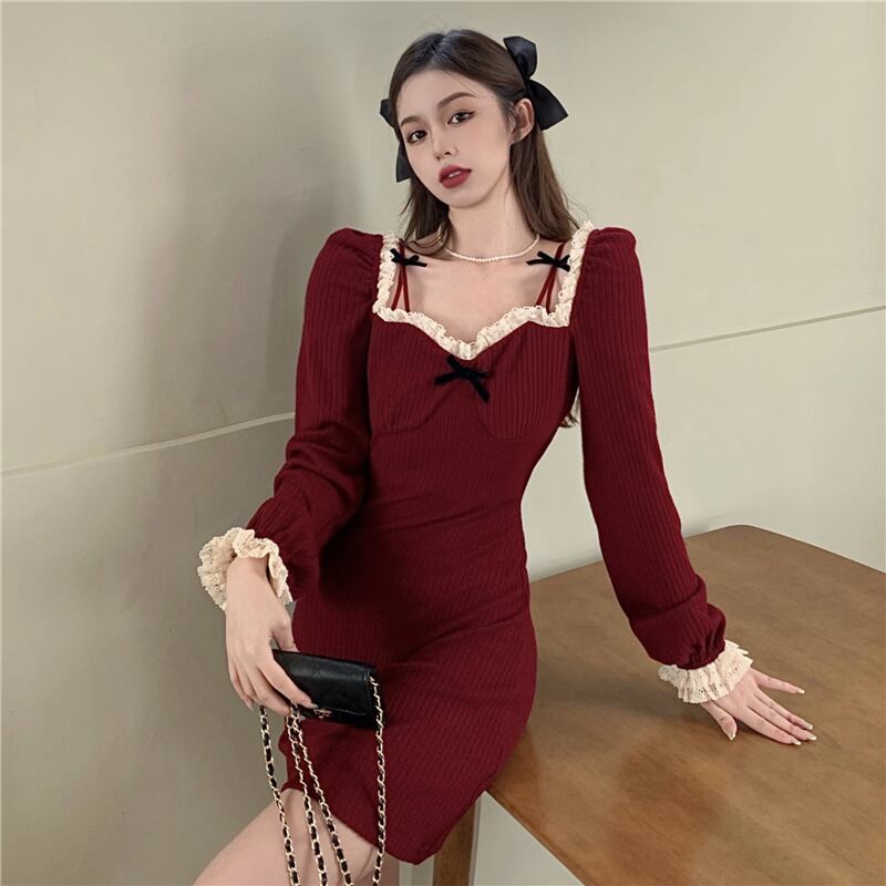 2ウェイデザイン ハートネック フロントダブルストラップ フリルレーストリミング 配色リボン装飾 マイクロミニ丈 足見せ ワンピース ミニ丈 ショート丈 膝上 長袖 オフショルダー スリム タイト 細身 レース リボン リブ 2way 伸縮性 ニット 異素材MIX かわいい 大人可愛い シンプル おしゃれ 大人女子 ガーリー キュート 個性的 セクシー 抜け感 無地 春 秋 レディース デート お出かけ 休日 韓国系 オルチャン ファッション コーデ 小さいサイズ 脚長 黒 ブラック 赤 レッド