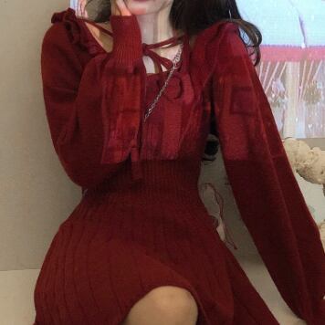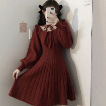 バルーン袖ニットワンピース ワンピース ニット ひざ丈 膝上 袖あり 七分袖 ボリューム袖 Vネック フレア Aライン フリル リボン リブ リブニット 伸縮性 ニット かわいい 大人可愛い きれいめ シンプル 大人 上品 おしゃれ かっこいい 大人可愛い ラブリー キュート ガーリー 主役級 存在感 無地 秋 冬 誕生日 二次会 ハロウィン クリスマス バレンタイン 10代 20代 30代 レディース ママ 女の子 デート 女子会 パーティー イベント 着回し お揃い モテ インスタ映え フリーサイズ