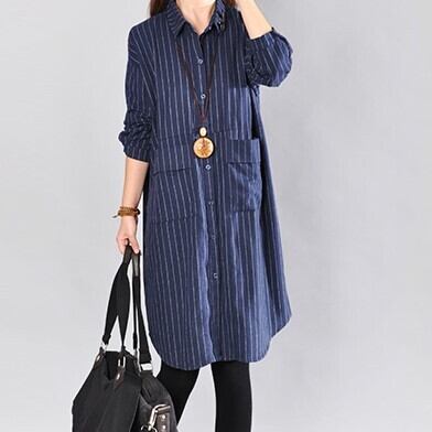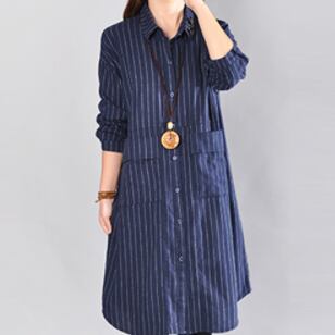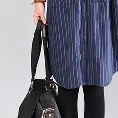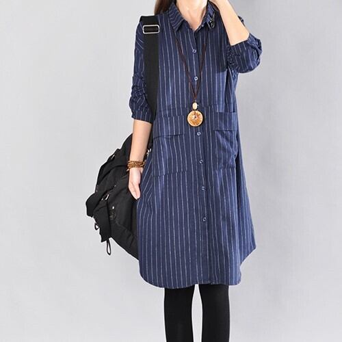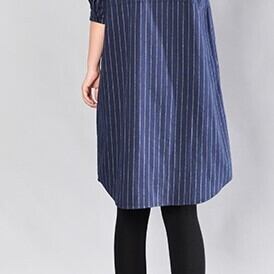春夏秋冬、幅広いシーンで活躍するブルーストライプ柄ワンピース。