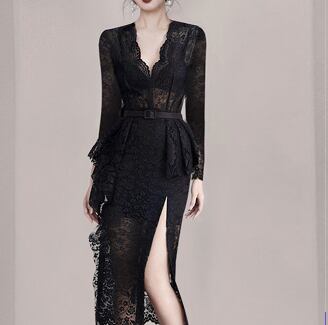 レース素材のタイトワンピースです。