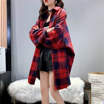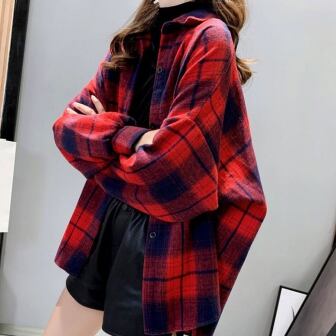 ロングシャツ トップス シャツ ブラウス カジュアル ブラック 黒 レッド 赤 オレンジ ミディアム丈 袖あり 長袖 襟付き シングルブレスト ボタン 大人女子 大人 上品 おしゃれ デイリーウェア レトロ レトロ風 こなれ感 ルーズ シルエット ラフ 個性的 デザイン 主役級 存在感 柄 チェック柄 春 スプリング 秋 オータム 20代 10代 30代 40代 レディース 女性用 オフィス ビジネス OL 通勤 学生 学校 通学 着回し 普段使い S M L XL