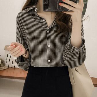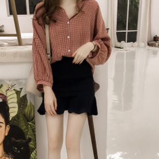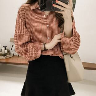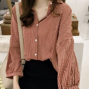 チェック柄シャツ トップス カジュアル ブラック 黒 レッド 赤 レギュラー丈 袖あり 長袖 襟付き シングルブレスト ボタン 綿 コットン 大人女子 大人 上品 おしゃれ デイリーウェア レトロ レトロ風 こなれ感 個性的 デザイン 主役級 存在感 柄 チェック柄 春 スプリング 秋 オータム 20代 10代 30代 レディース 女性用 学生 学校 通学 着回し 普段使い トレンド ファッション コーデ M L XL 2XL 3XL 4XL 大きいサイズ
