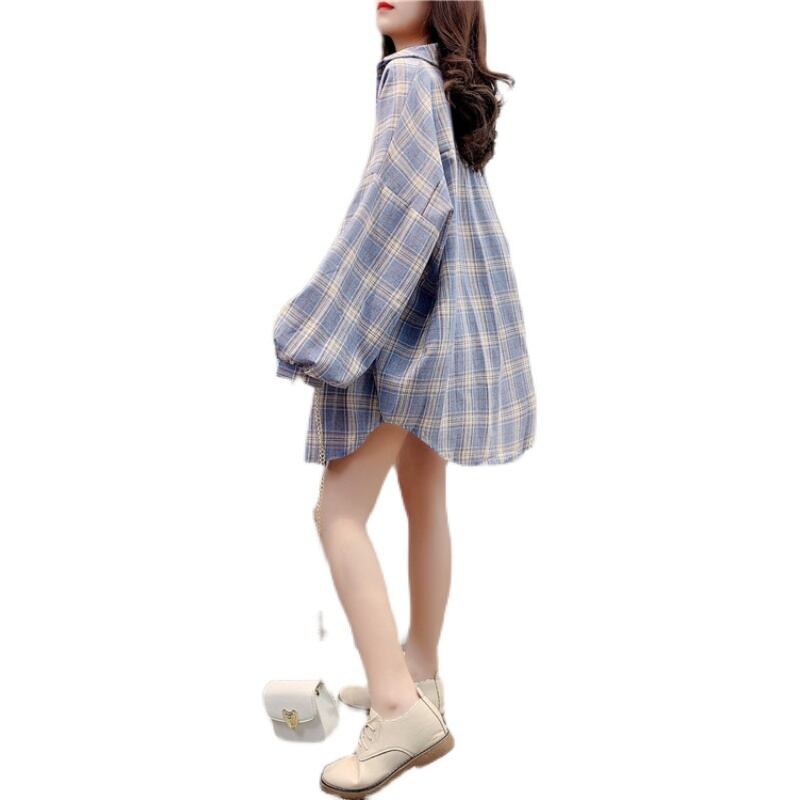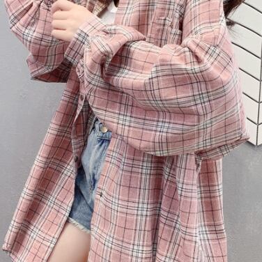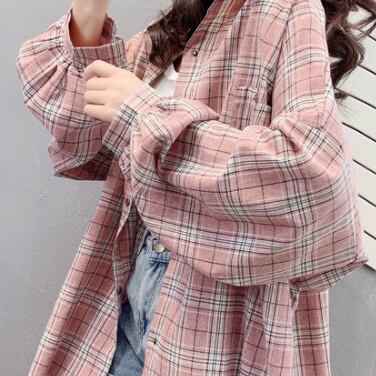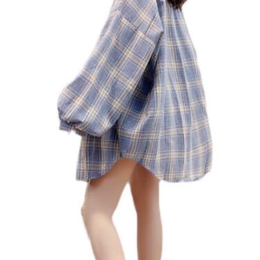 ロングシャツ トップス シャツ ブラウス カジュアル ブルー 青 ピンク ミディアム丈 袖あり 長袖 襟付き シングルブレスト ボタン 大人女子 大人 上品 おしゃれ デイリーウェア レトロ レトロ風 こなれ感 ルーズ シルエット ラフ 主役級 存在感 柄 チェック柄 春 スプリング 20代 10代 30代 40代 レディース 女性用 オフィス ビジネス OL 通勤 学生 学校 通学 着回し 普段使い 重ね着 レイヤード S M L XL 2XL