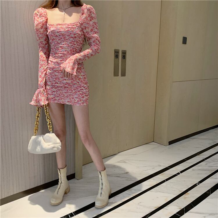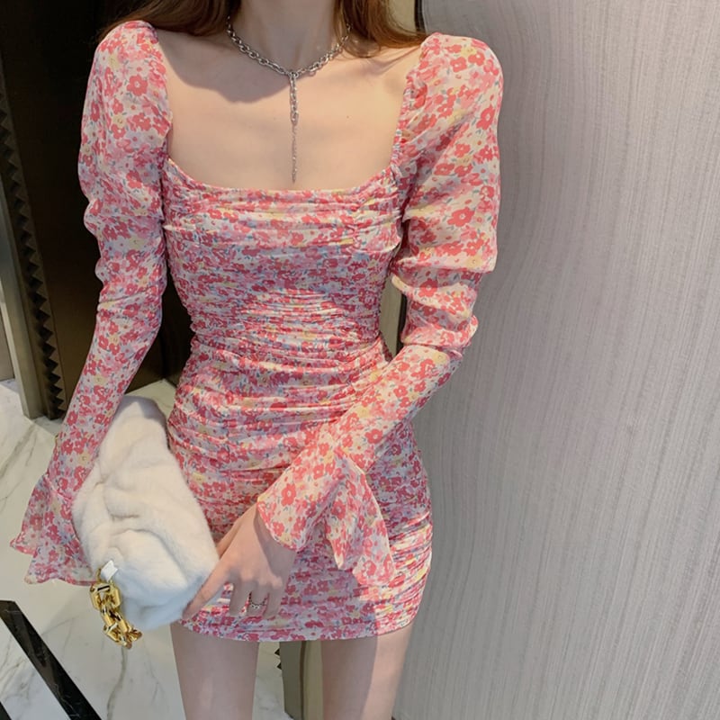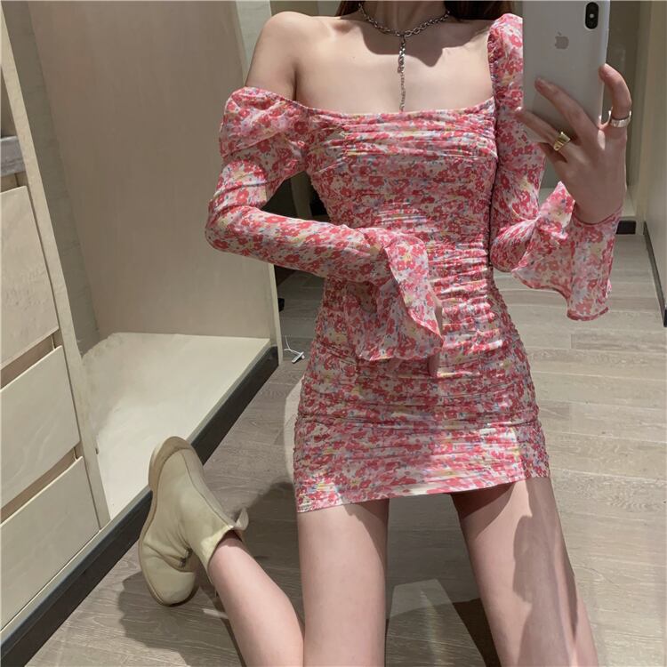 2ウェイデザイン フレアカフス 前後ワイドスクエアネック 鎖骨見せ デコルテ魅せ フローラル フラワープリント ボディコンシャス ストレッチ 女っぽ 足見せ マイクロミニ丈 ワンピース ワンピドレス ミニ丈 ショート丈 膝上 長袖 パフスリーブ スクエアネック オフショルダー スリム タイト 細身 2way 伸縮性 大人可愛い シンプル きれいめ おしゃれ セクシー ガーリー 抜け感 花柄 春 夏 レディース 女の子 デート イベント 韓国系 オルチャン コーデ スタイル 小さいサイズ 脚長 ピンク