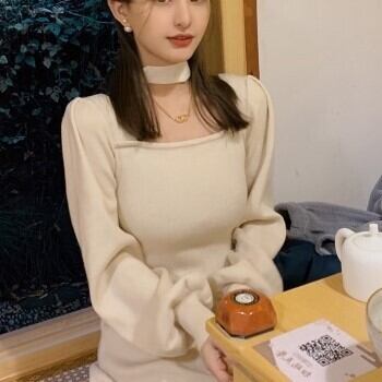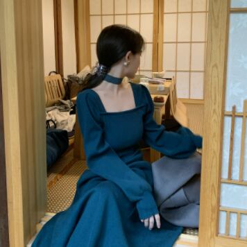 Uネックのロングワンピースです。