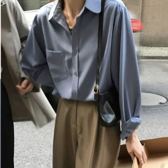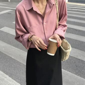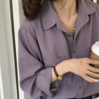 カラーシャツ パープル、ブルー、ピンクの3色展開で、トップスやシャツ、ブラウスとしても幅広く使えるアイテムです。シンプルでありながら、スリムな細身シルエットが女性らしい雰囲気を演出します。また、ストレートなデザインでスマートで清潔感のある着こなしも可能です。モード系、大人可愛い、大人女子、こなれ感、エレガント、セクシー、クールなど様々なスタイルに合わせられるオールマイティなアイテムです。家庭での洗濯対応と手入れがしやすいことも魅力です。
