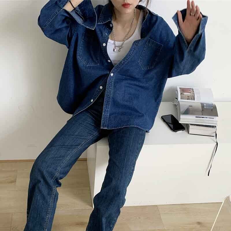 デニムシャツ トップス シャツ ブラウス カジュアル ブルー 青 レギュラー丈 袖あり 長袖 襟付き ストレート シングルブレスト ボタン 綿 コットン 大人女子 大人 上品 おしゃれ デイリーウェア レトロ レトロ風 こなれ感 個性的 デザイン 主役級 存在感 無地 春 スプリング 20代 10代 30代 40代 レディース 女性用 オフィス ビジネス OL 通勤 学生 学校 通学 着回し 普段使い 重ね着 レイヤード S M L XL 2XL 3XL 大きいサイズ