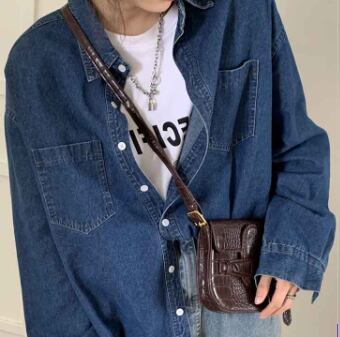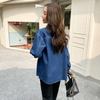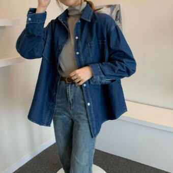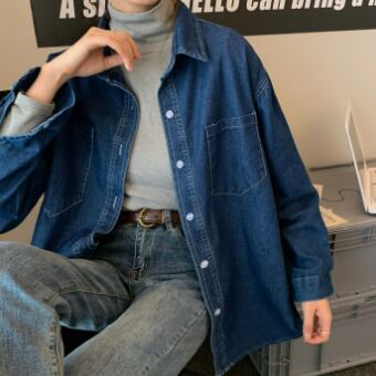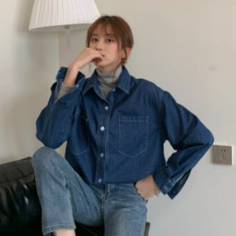 カジュアルな長袖デニムシャツ