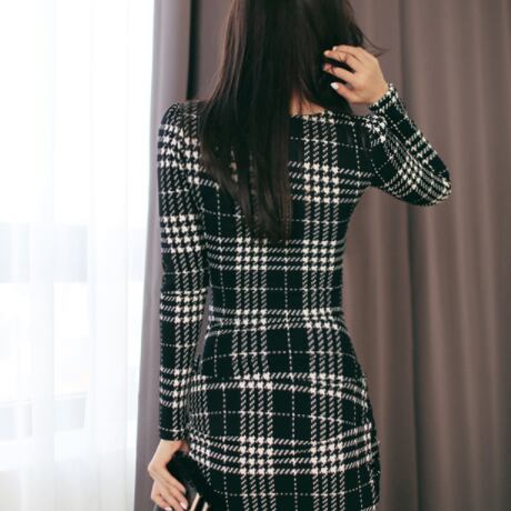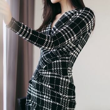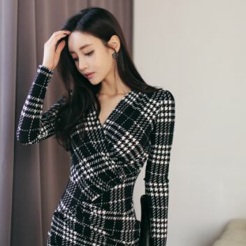 ミニワンピース ミニドレス ワンピース ミニ ミニ丈 長袖 Vネック スリム タイト 細身 スマート かわいい 大人可愛い おしゃれ お洒落 レトロ 大人可愛い 大人女子 キュート ガーリー セクシー エレガント 主役級 存在感 格子柄 千鳥格子 春 秋 冬 10代 20代 30代 40代 レディース 女性用 女の子 フェミニン デート お出かけ 女子会 お泊まり 休日 韓国 韓国系 ファッション コーデ スタイル モテ 美脚 脚長 新作 定番 送料無料 インポート 海外 人気 女子力 大人カジュアル