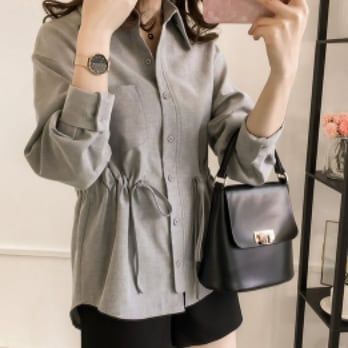 このシャツはブルーとグレーの2色展開で、スリムで細身ながらもストレートなシルエットが特徴的です。シンプルでおしゃれなデザインなので、幅広いスタイルに合わせられます。大人女子にこそ着て欲しい、かわいくて上品な一枚です。