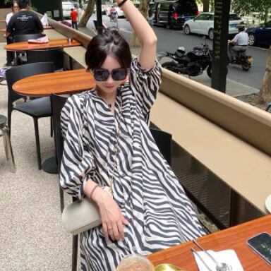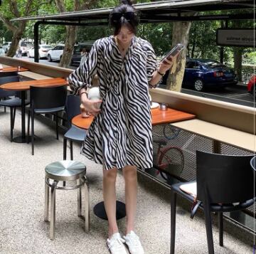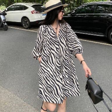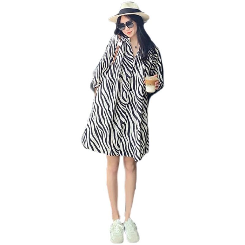 ゼブラ柄ワンピース トップス ショート丈 袖あり 長袖 Vネック ワイド シングルブレスト ボタン 大人女子 大人 上品 おしゃれ かっこいい クール エレガント デイリーウェア レトロ レトロ風 こなれ感 ルーズ シルエット ラフ 個性的 デザイン 主役級 存在感 柄 セブラ柄 春 スプリング 秋 オータム 20代 10代 30代 レディース 女性用 マタニティ デート お出かけ 女子会 食事会 着回し 普段使い M L XL 2XL 3XL 大きいサイズ
